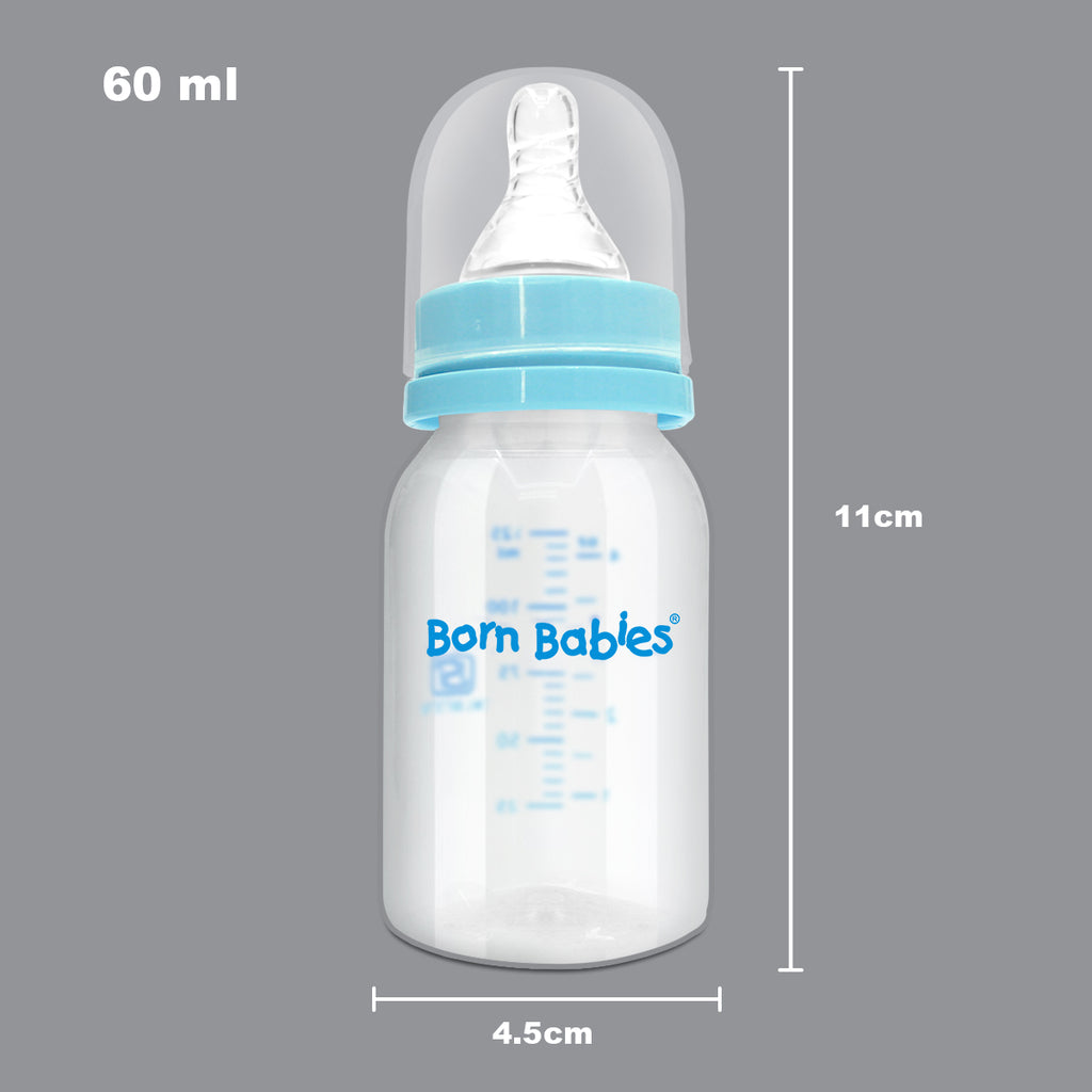 Born Babies Feeding Bottle With Anti-Colic Silicone Nipple & Travel Cap, BPA Free,60 ML - Blue