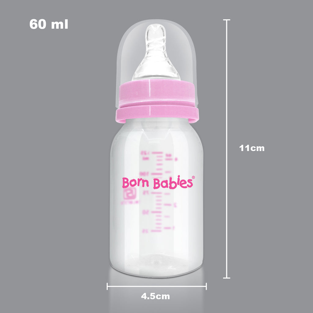 Born Babies Feeding Bottle With Anti-Colic Silicone Nipple & Travel Cap, BPA Free,60 ML - Pink