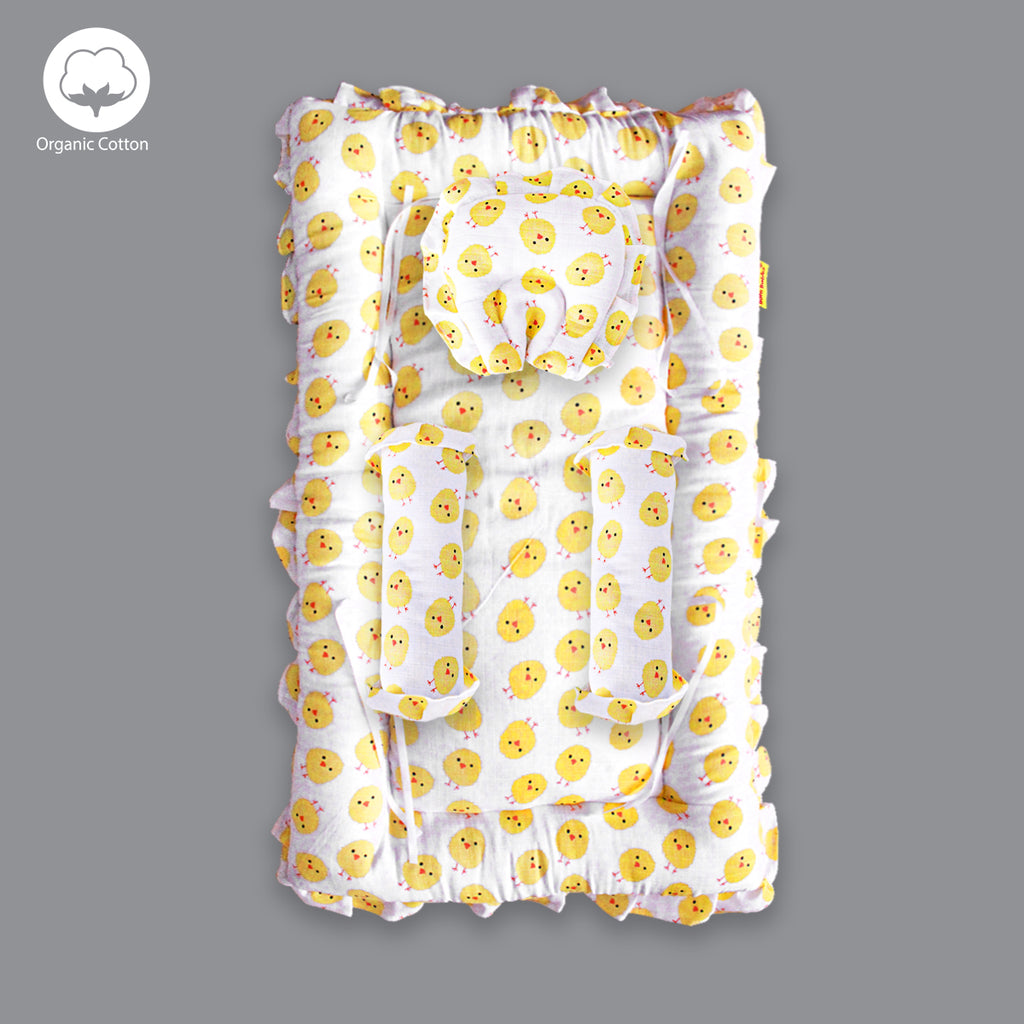 Born Babies Muslin Cotton Baby Printed Bolster Bedding Set - Yellow