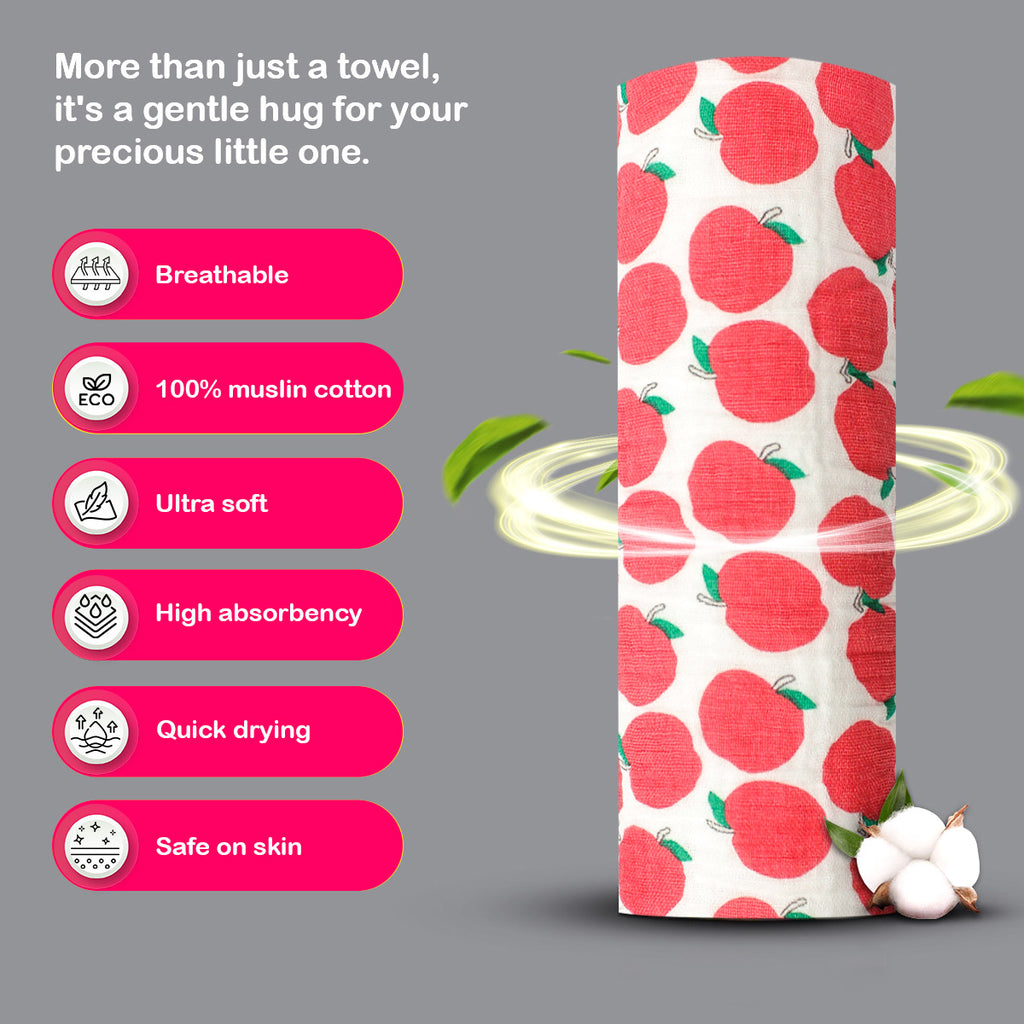 Born Babies Baby Super Soft Absorbent Muslin Towel Cum Blanket - Red