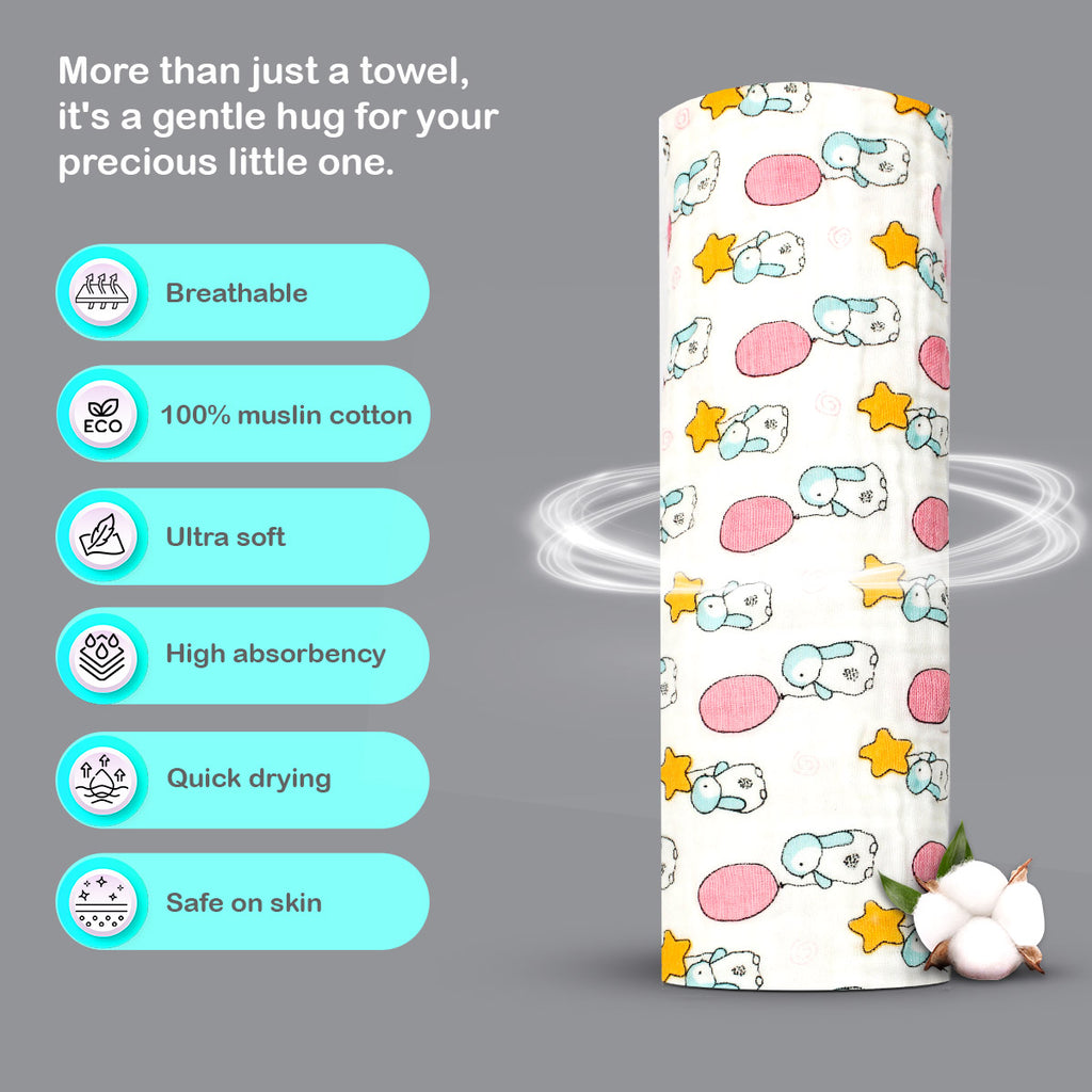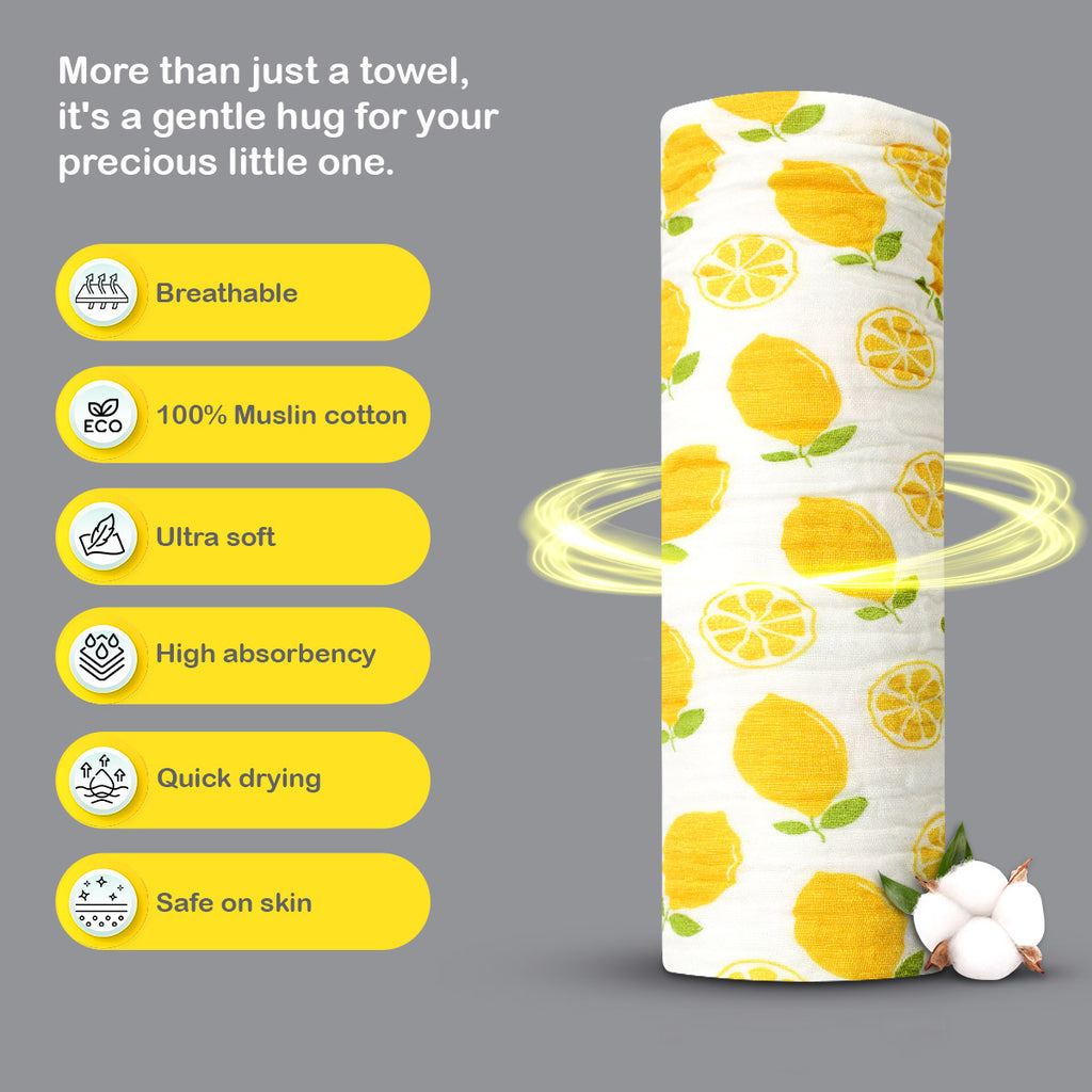 Born Babies Baby Super Soft Absorbent Muslin Towel Cum Blanket - Yellow