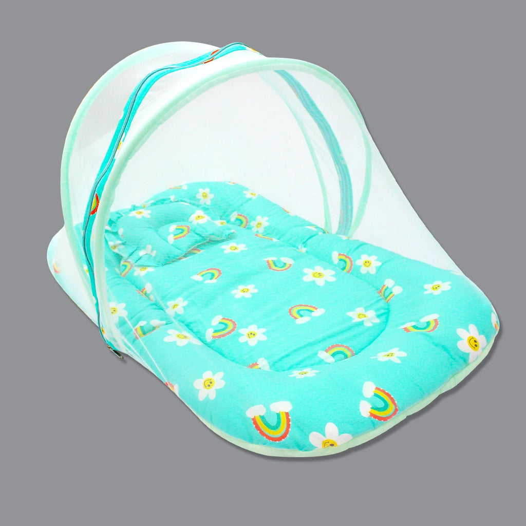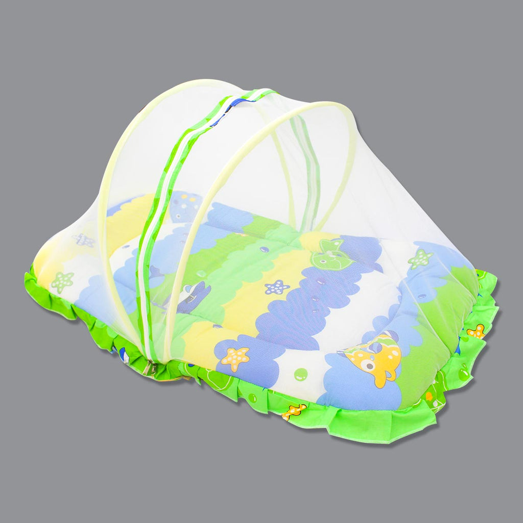 Born Babies Baby Cotton Printed Net Bed With Pillow Green