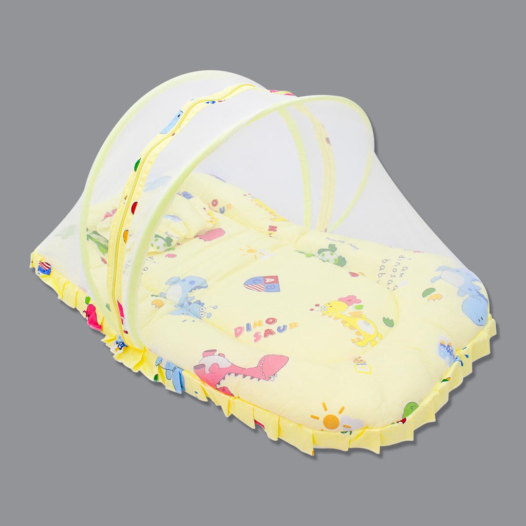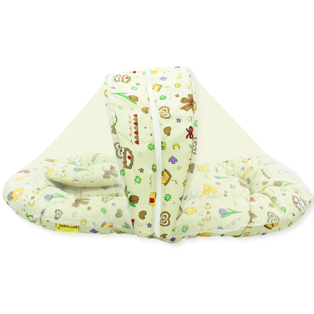 Born Babies Baby Cotton Printed Net Bed With Pillow Yellow
