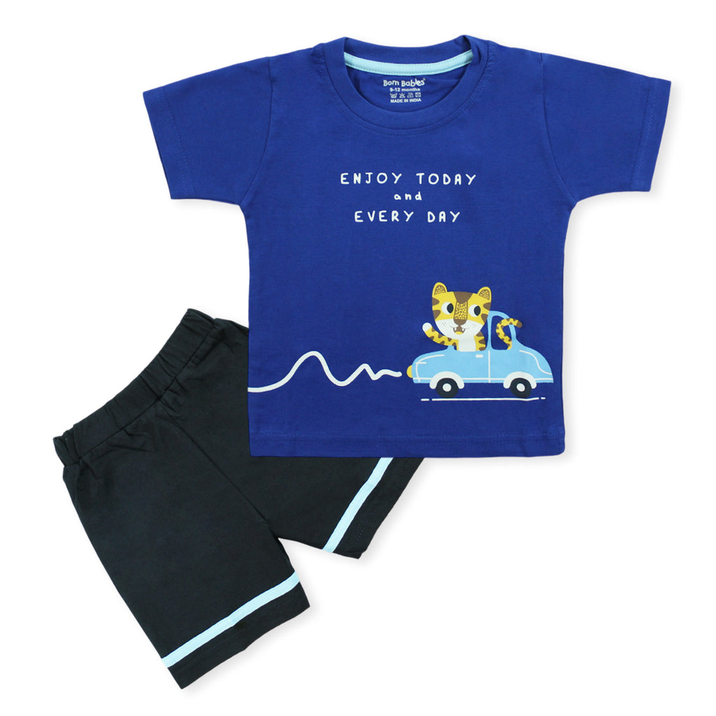 Born Babies Cotton T-Shirts & Shorts Set - (Blue & Black)