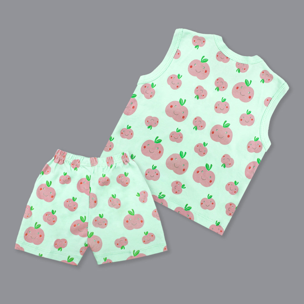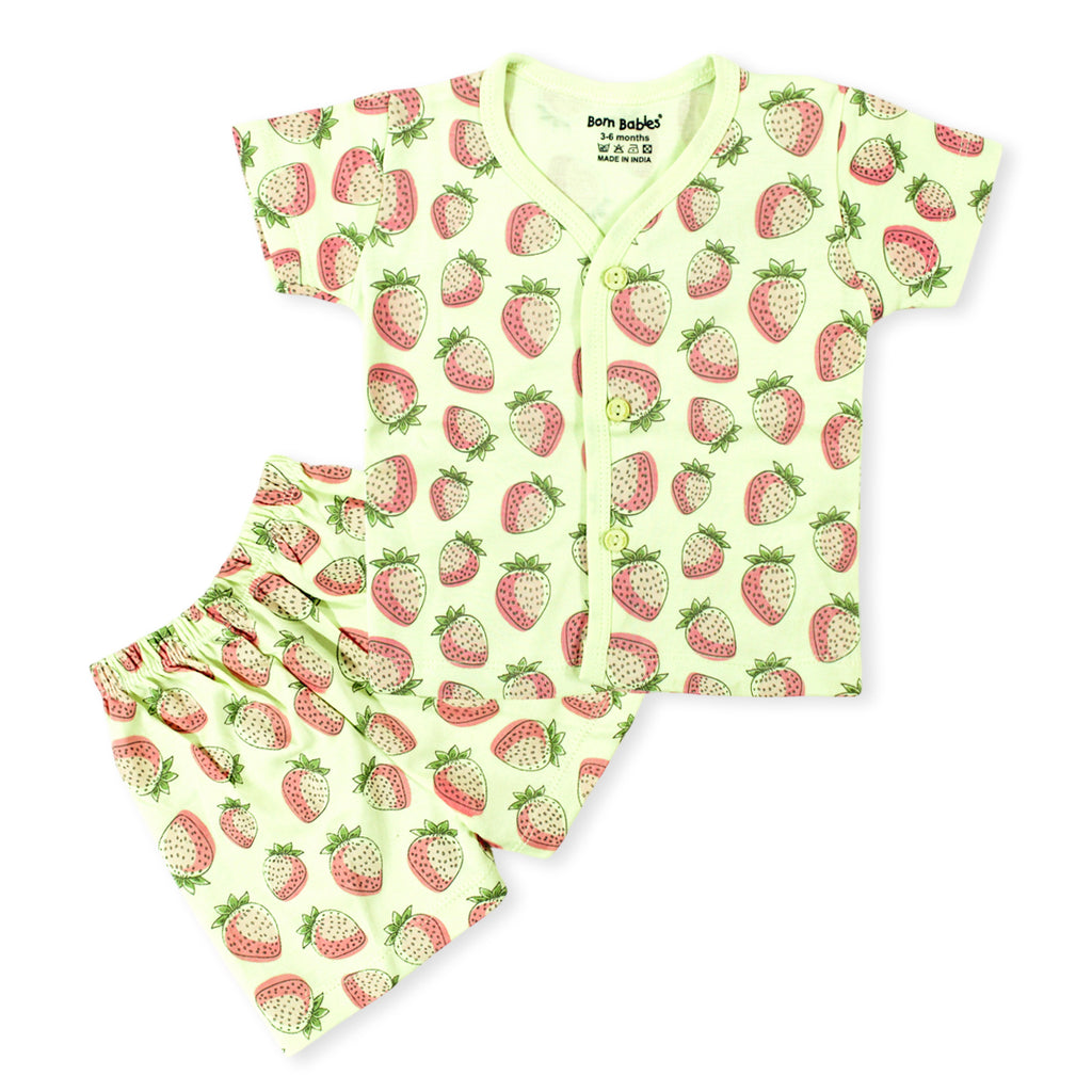 Born Babies Unisex Organic Cotton Printed HalfSleeve Top & Shorts Set - Green