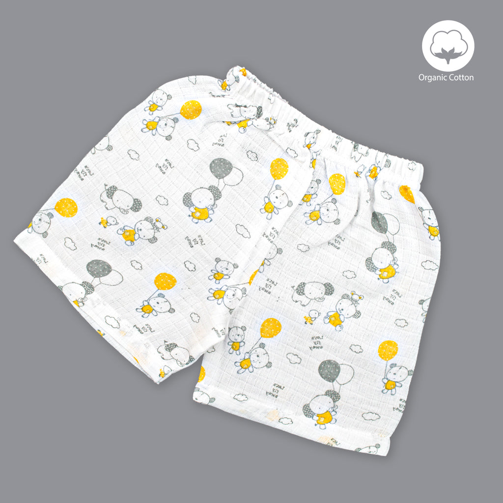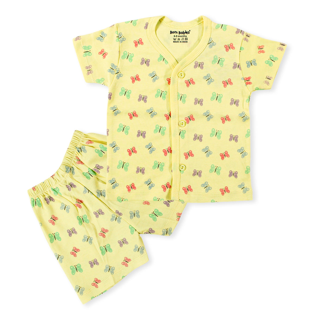 Born Babies Unisex Organic Cotton Printed HalfSleeve Top & Shorts Set - Yellow