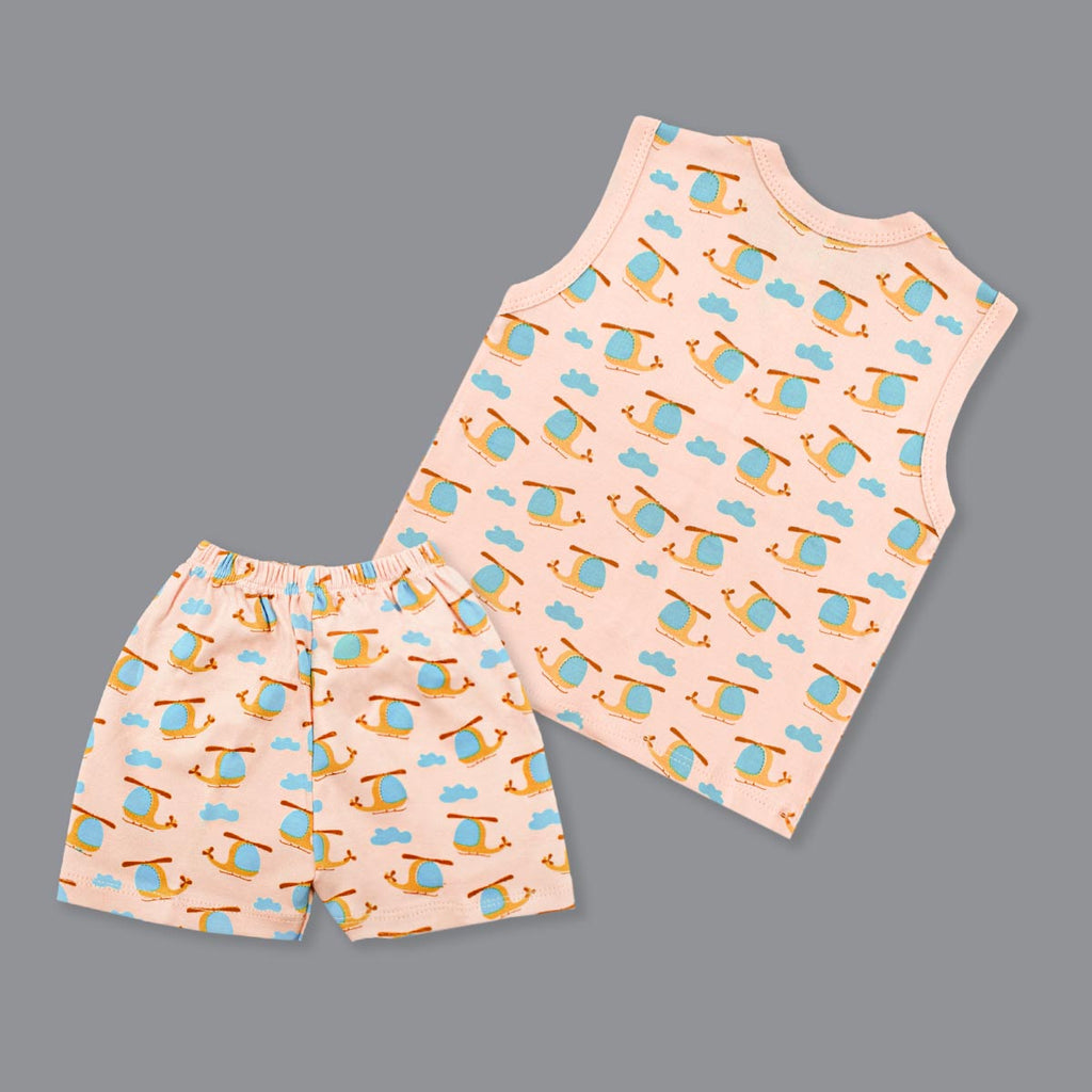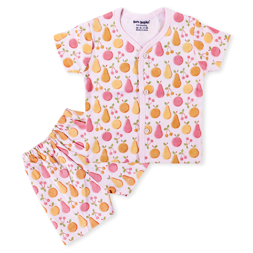 Born Babies Unisex Organic Cotton Printed HalfSleeve Top & Shorts Set - Pink