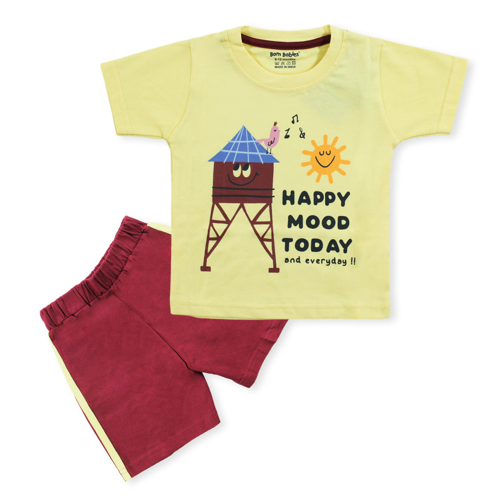 Born Babies Cotton T-Shirts & Short Set - (Yellow & Red)