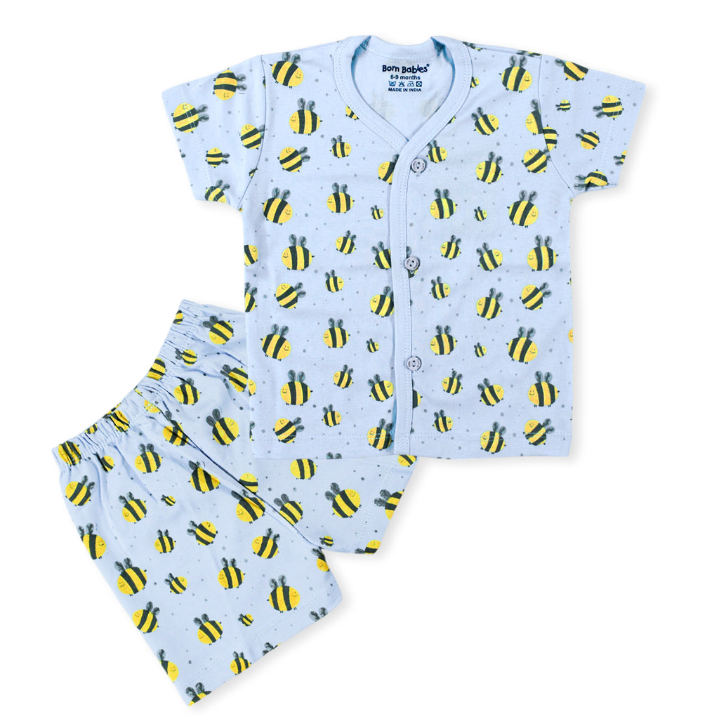 Born Babies Unisex Organic Cotton Printed HalfSleeve Top & Shorts Set - Blue