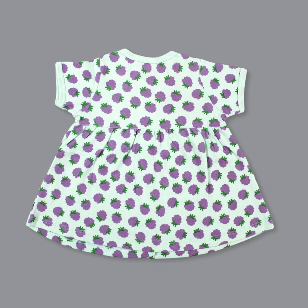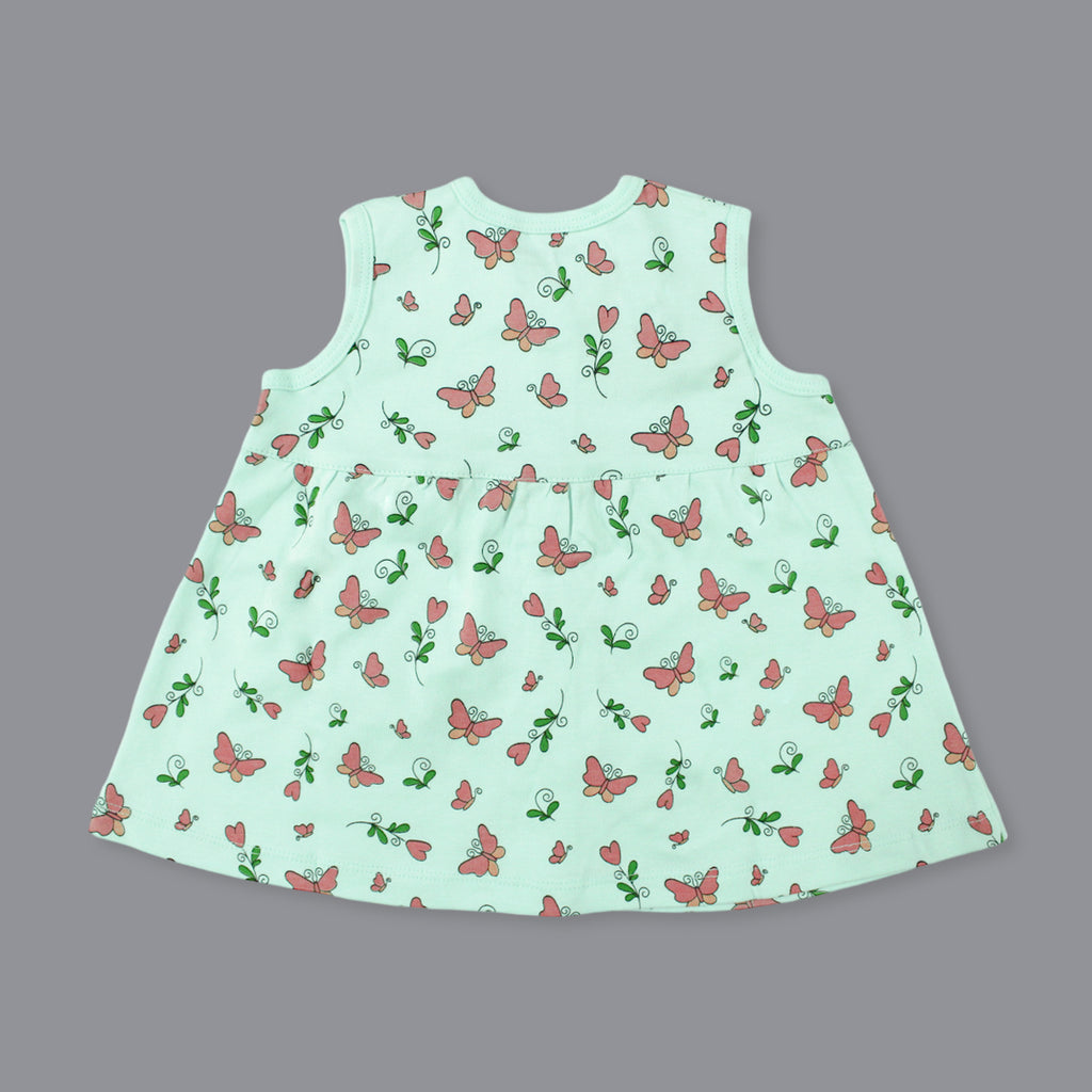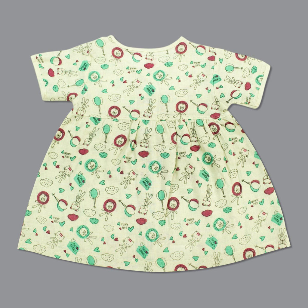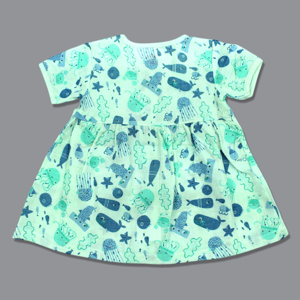 Baby Girl Organic cotton HalfSleeve Printed Button Frock - Light Green