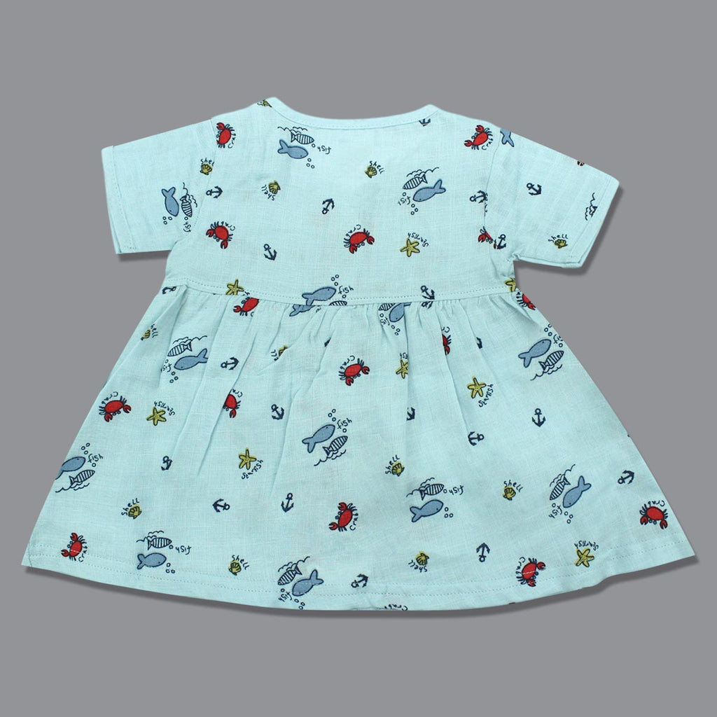 Baby Girl Organic cotton HalfSleeve Printed Button Frock - Light Blue