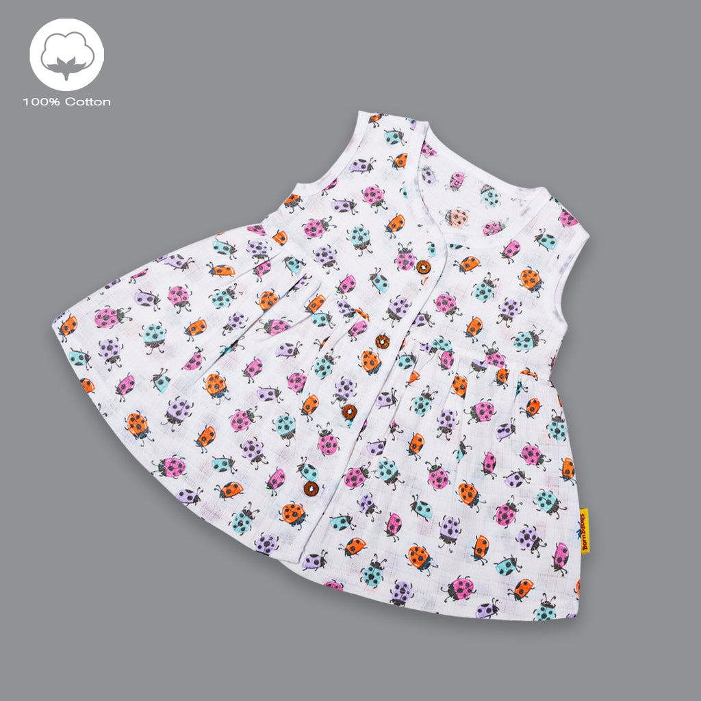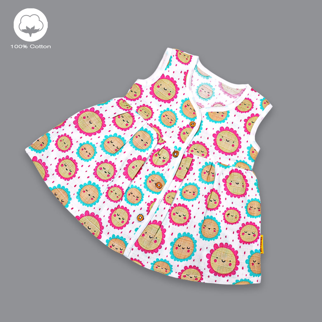 Baby Girl Organic Muslin cotton Printed Button Sleeveless Frock Multicolor (Pack Of 3)