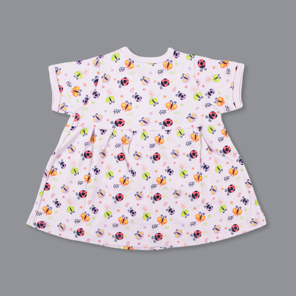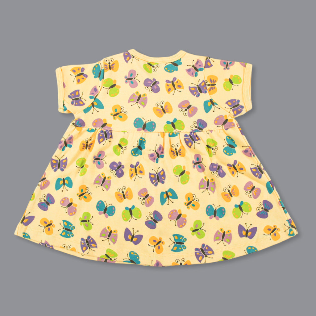 Baby Girl Organic cotton HalfSleeve Printed Button Frock - Light Yellow
