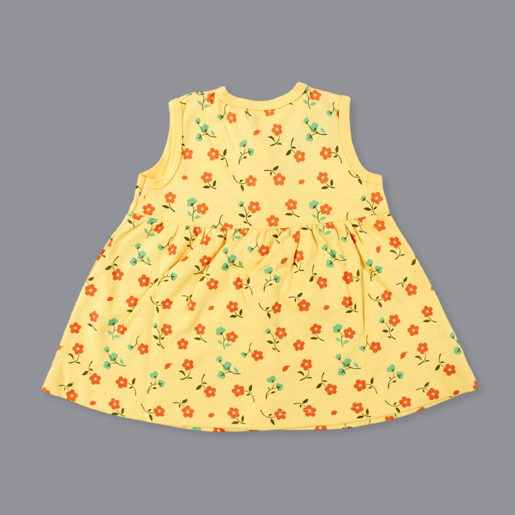 Baby Girl Organic Muslin cotton Printed Button Sleeveless Frock-Yellow