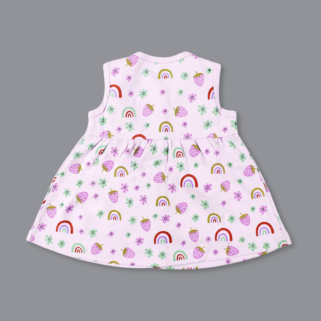 Baby Girl Organic Muslin cotton Printed Button Sleeveless Frock-Purple