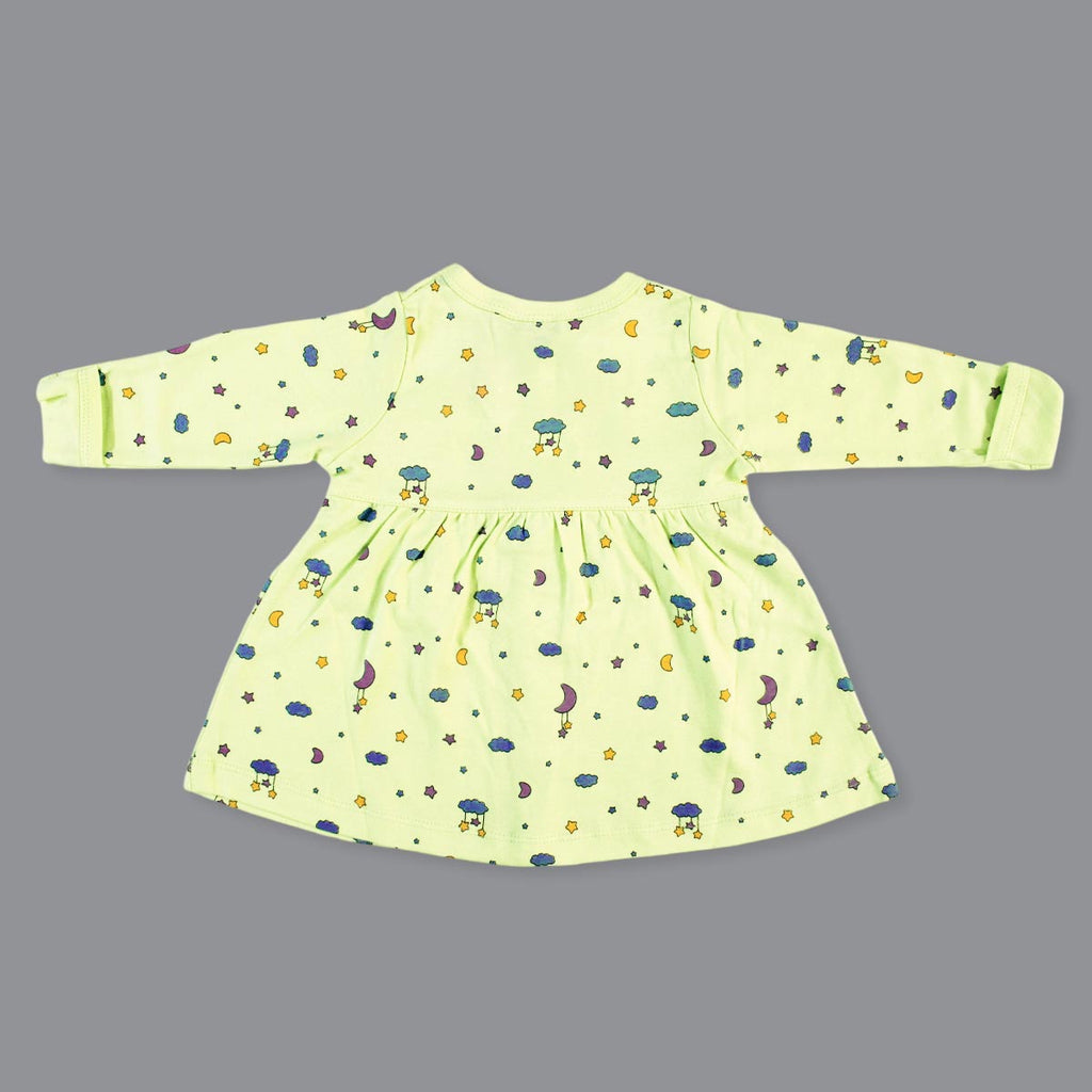 Born Babies Cotton Fullsleeve Full Sleeve Frock- Light Green