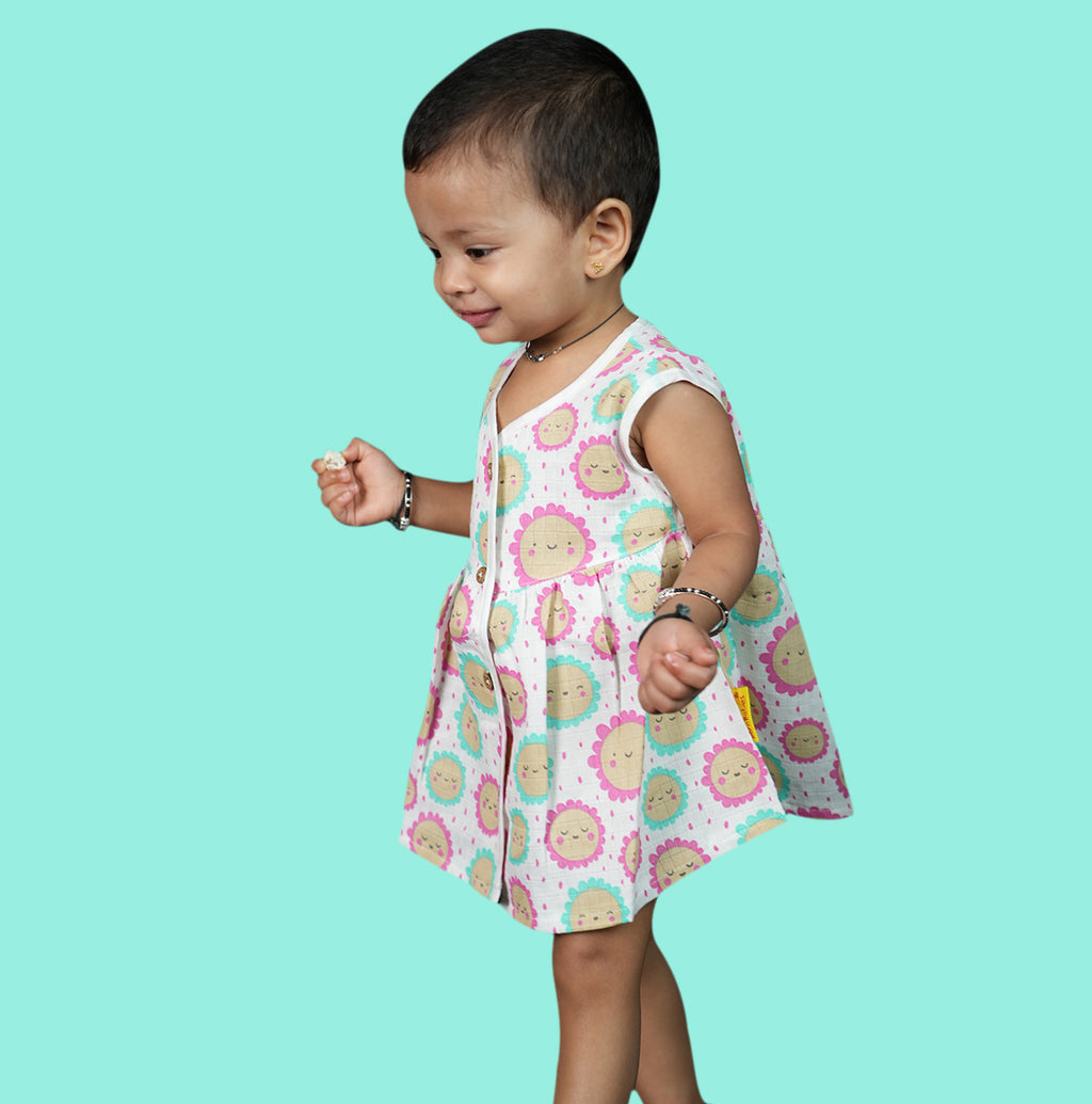 Our muslin frocks are not just about comfort; they are also about style. Whether you're dressing up for a special occasion or simply enjoying a day out, our frocks effortlessly blend comfort with elegance, making them a must-have in every baby's wardrobe.
