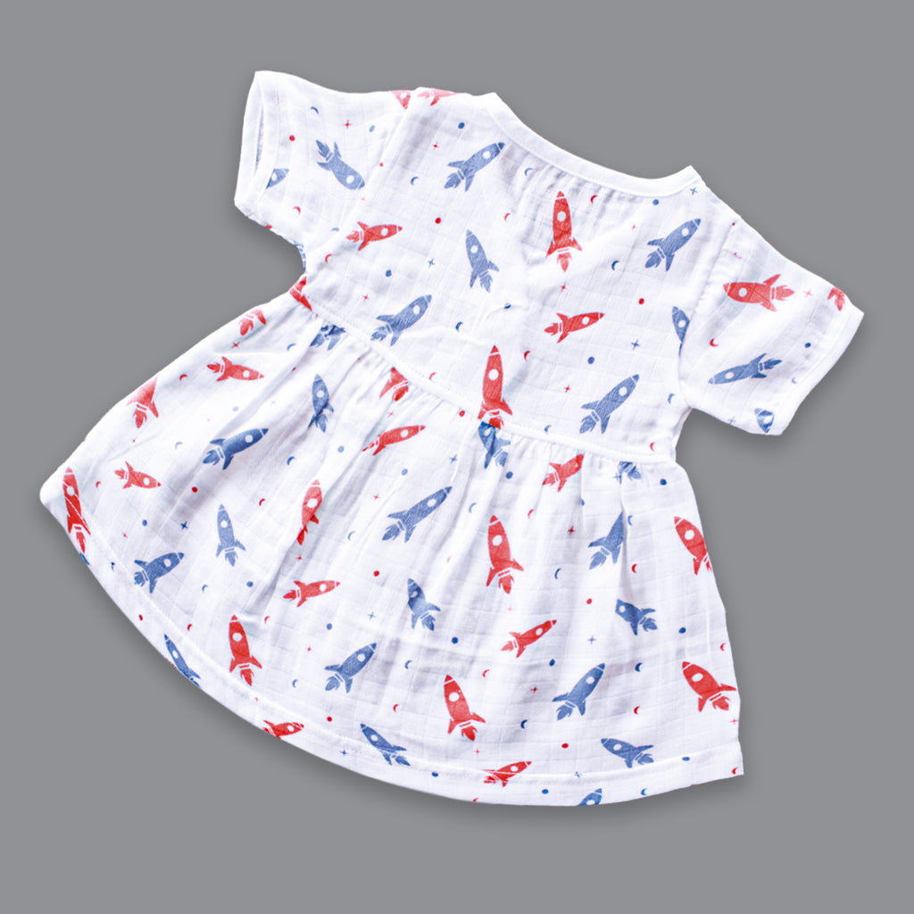 Born Babies Baby Girl Organic Muslin cotton Printed Button HalfSleeve Frock-Blue