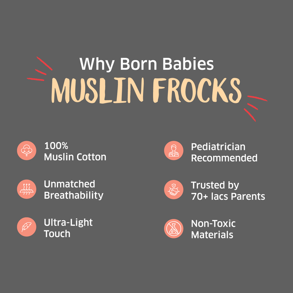 Muslin frocks are made from breathable fabric, which is gentle on your baby's delicate skin. They are also versatile and fashionable, ensuring your baby looks adorable while staying comfortable.