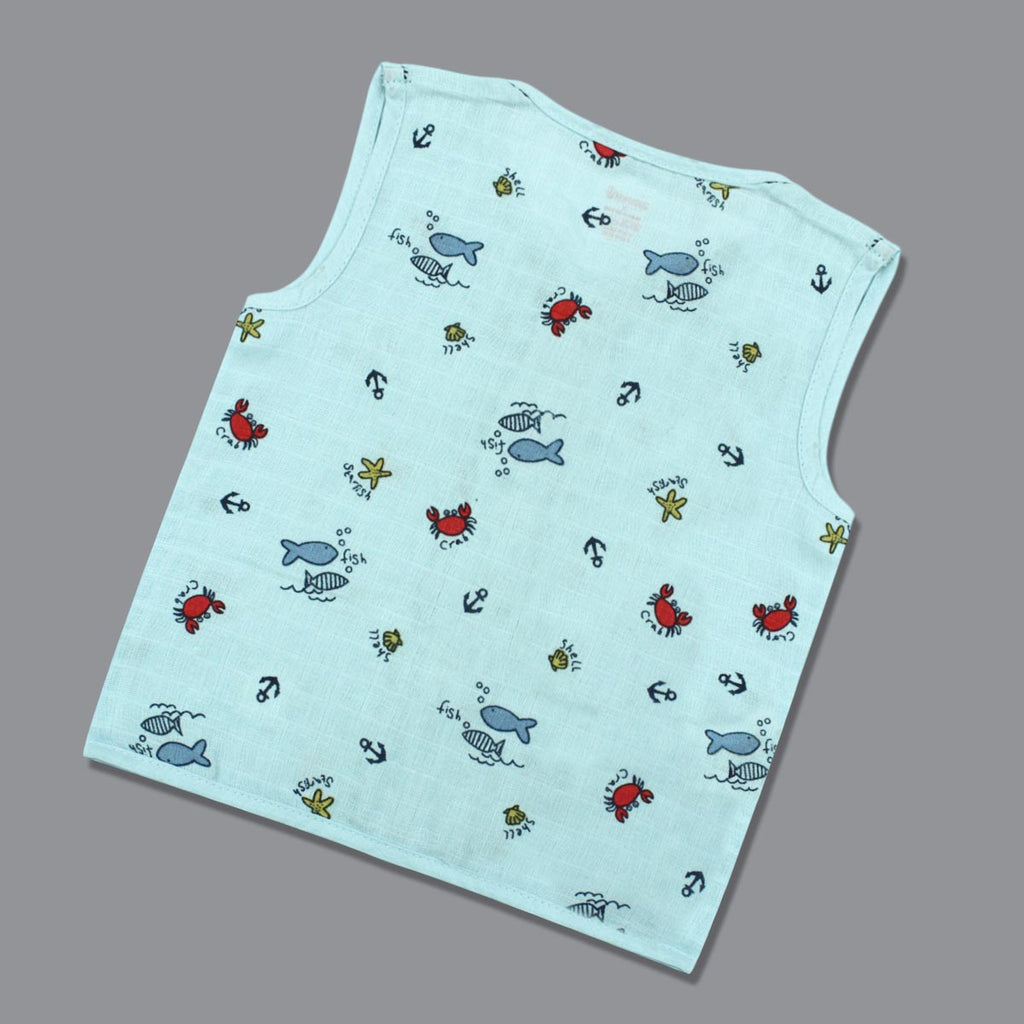Born Babies Baby Boy & Baby Girl Organic cotton Printed Sleeveless Front Open Button Jablas - Light Blue