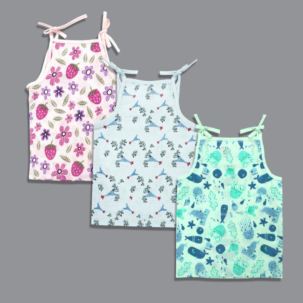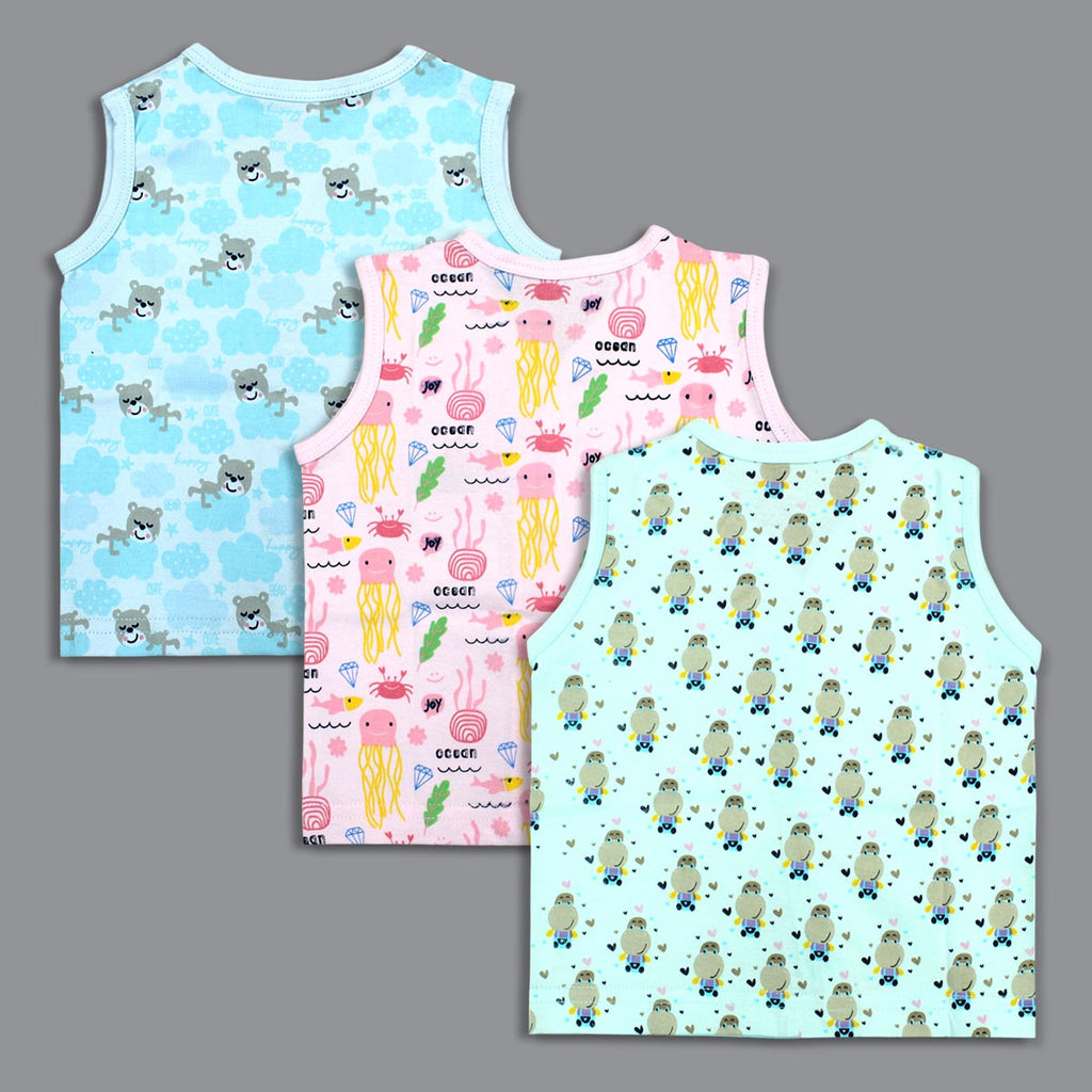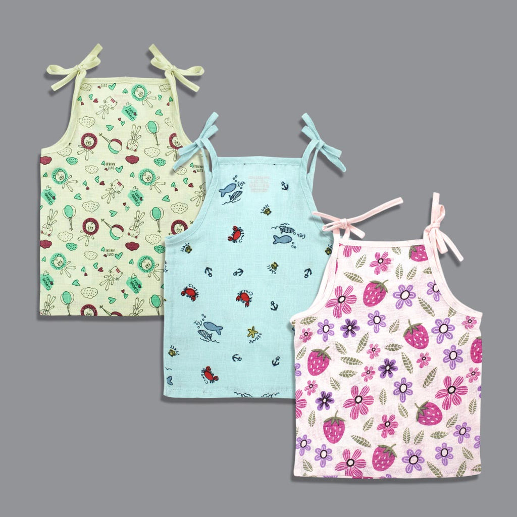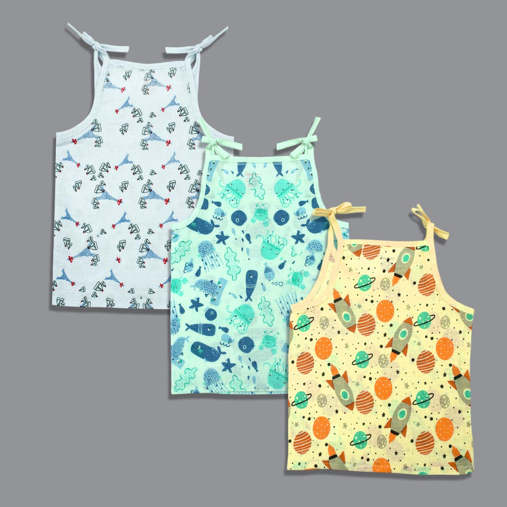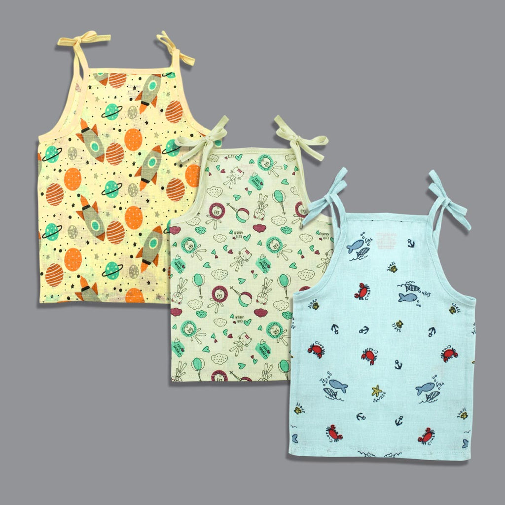 Born Babies Baby Boy & Baby Girl Organic cotton Printed Sleeveless Knotted Jabla - (Pack Of 3)