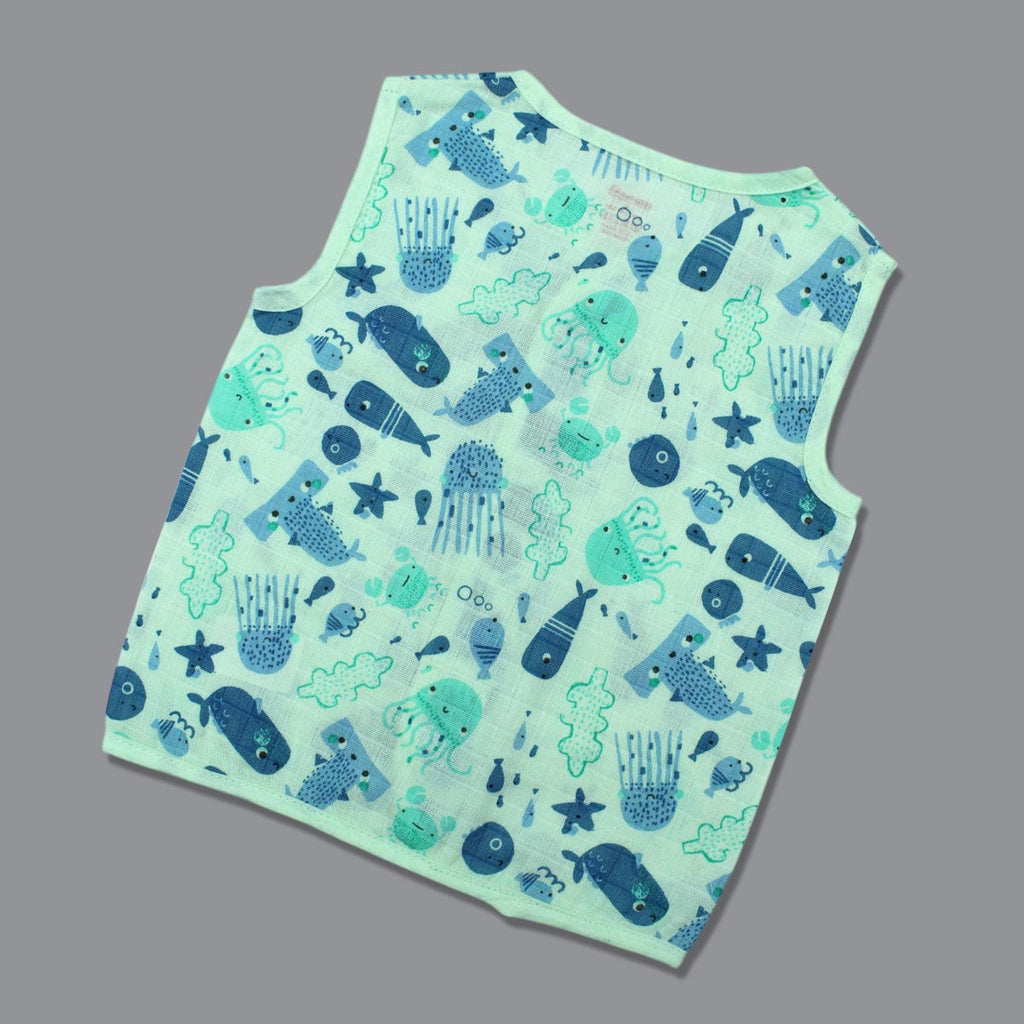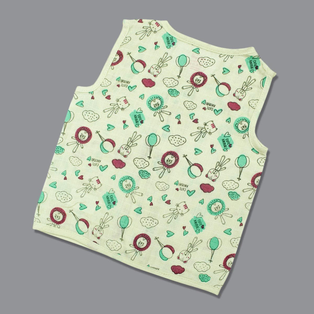 Born Babies Baby Boy & Baby Girl Organic cotton Printed Sleeveless Front Open Button Jablas - Light Green