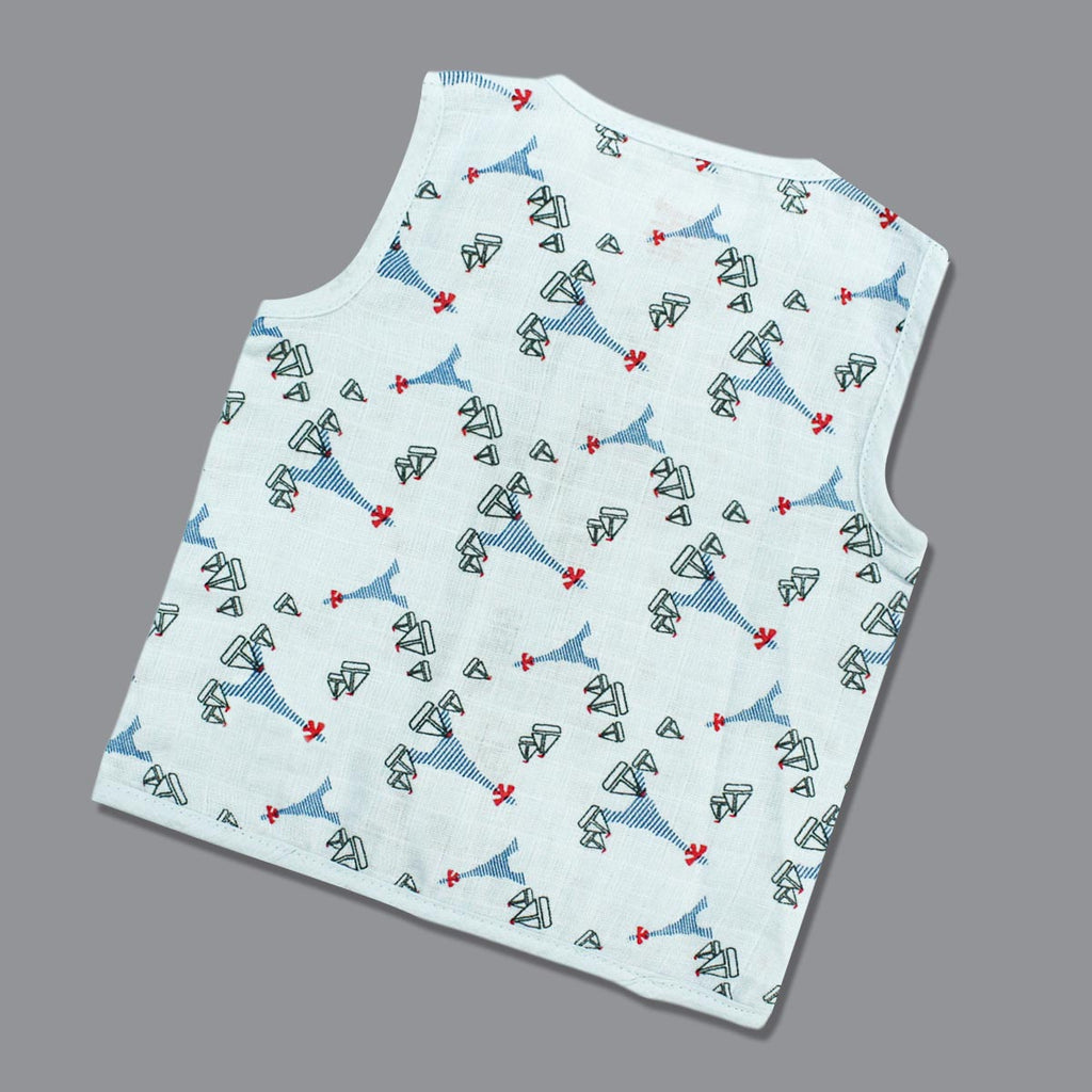 Born Babies Baby Boy & Baby Girl Organic cotton Printed Sleeveless Front Open Button Jablas-Light Blue