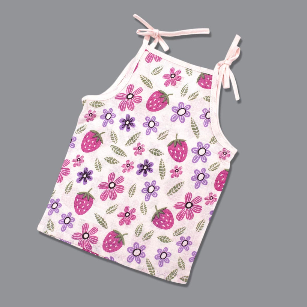 Born Babies Baby Boy & Baby Girl Organic cotton Printed Sleeveless Knotted Jabla - Pink