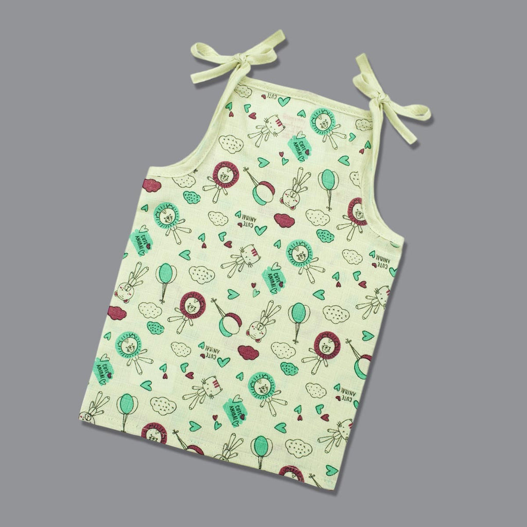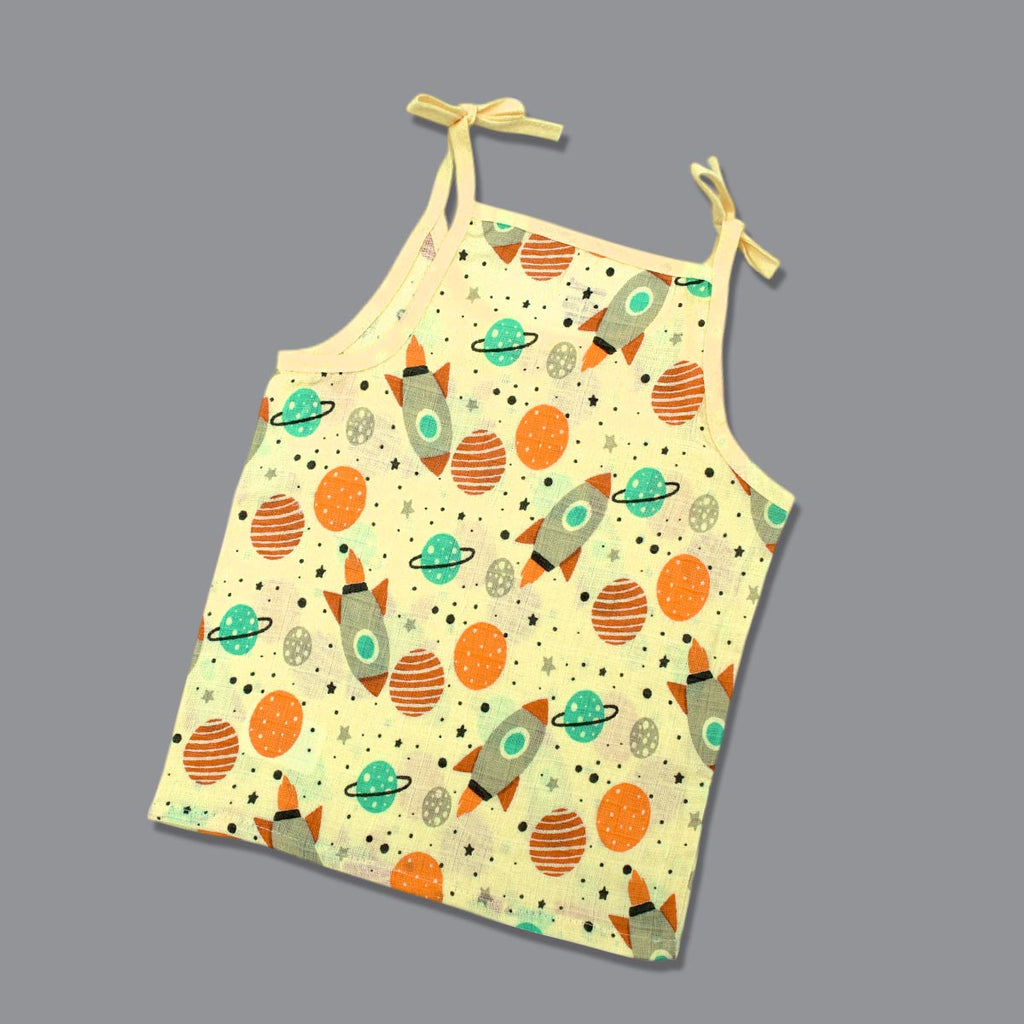 Born Babies Baby Boy & Baby Girl Organic cotton Printed Sleeveless Knotted Jabla - Light Yellow