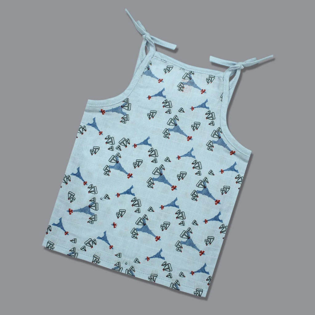 Born Babies Baby Boy & Baby Girl Organic cotton Printed Sleeveless Knotted Jabla - Light Blue