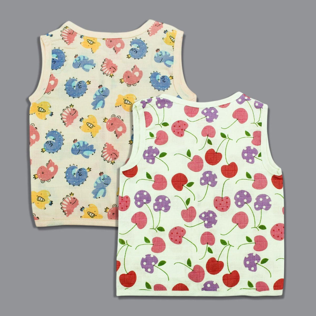 Born Babies Baby Boy & Baby Girl Organic cotton Printed Sleeveless Front Open Button Jabla - (Pack Of 2)