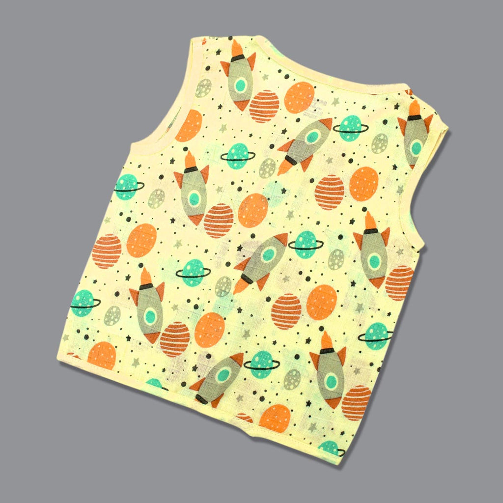 Born Babies Baby Boy & Baby Girl Organic cotton Printed Sleeveless Front Open Button Jablas-Yellow