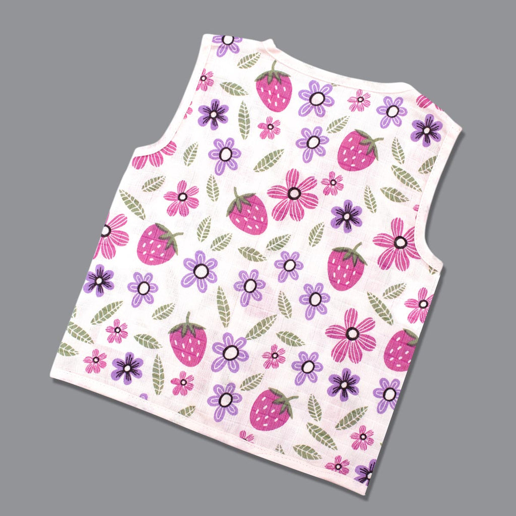 Born Babies Baby Boy & Baby Girl Organic cotton Printed Sleeveless Front Open Button Jablas-Pink