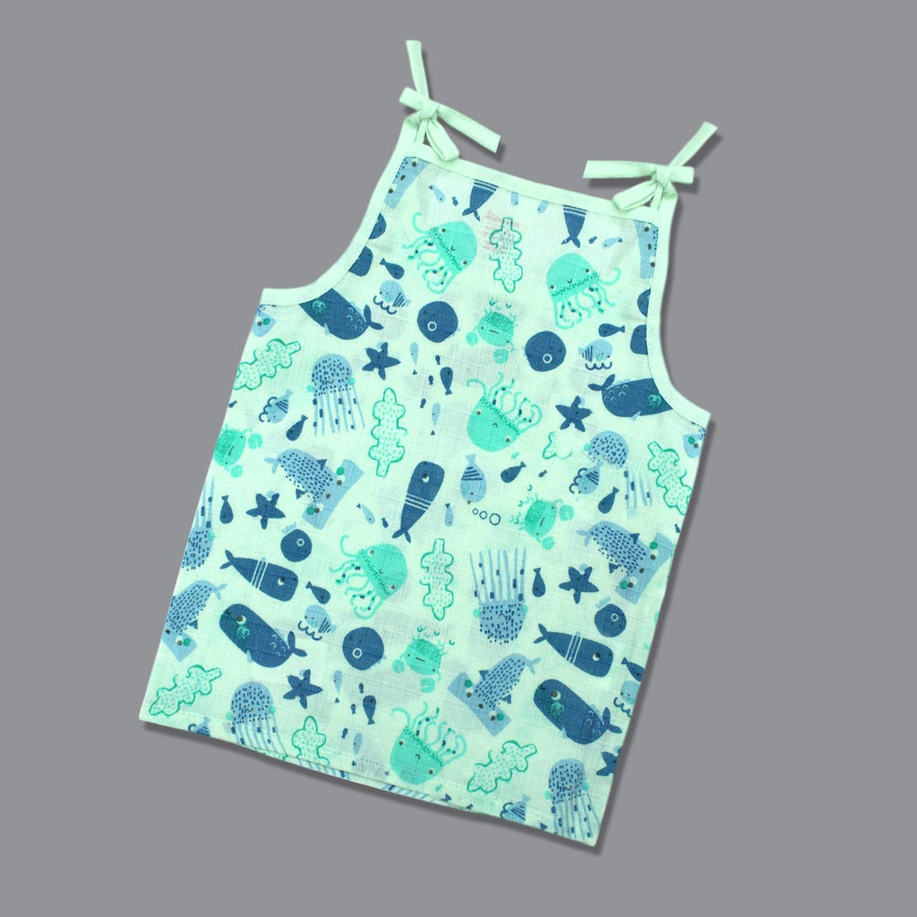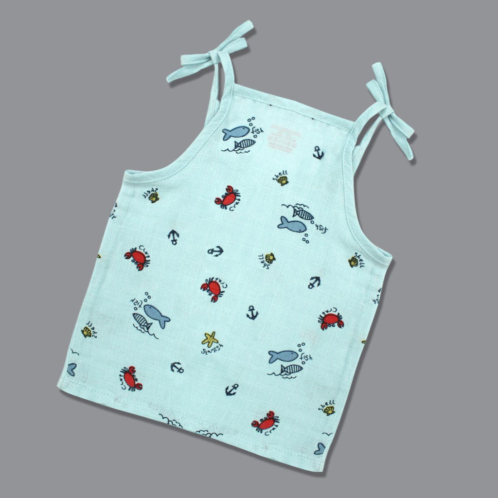 Born Babies Baby Boy & Baby Girl Organic cotton Printed Sleeveless Knotted Jabla - Light Green