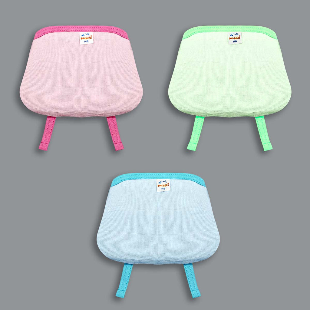 Babies Cotton Padded Assorted Pack Of 3 Nappy With Gentle Elastic & Double Loop