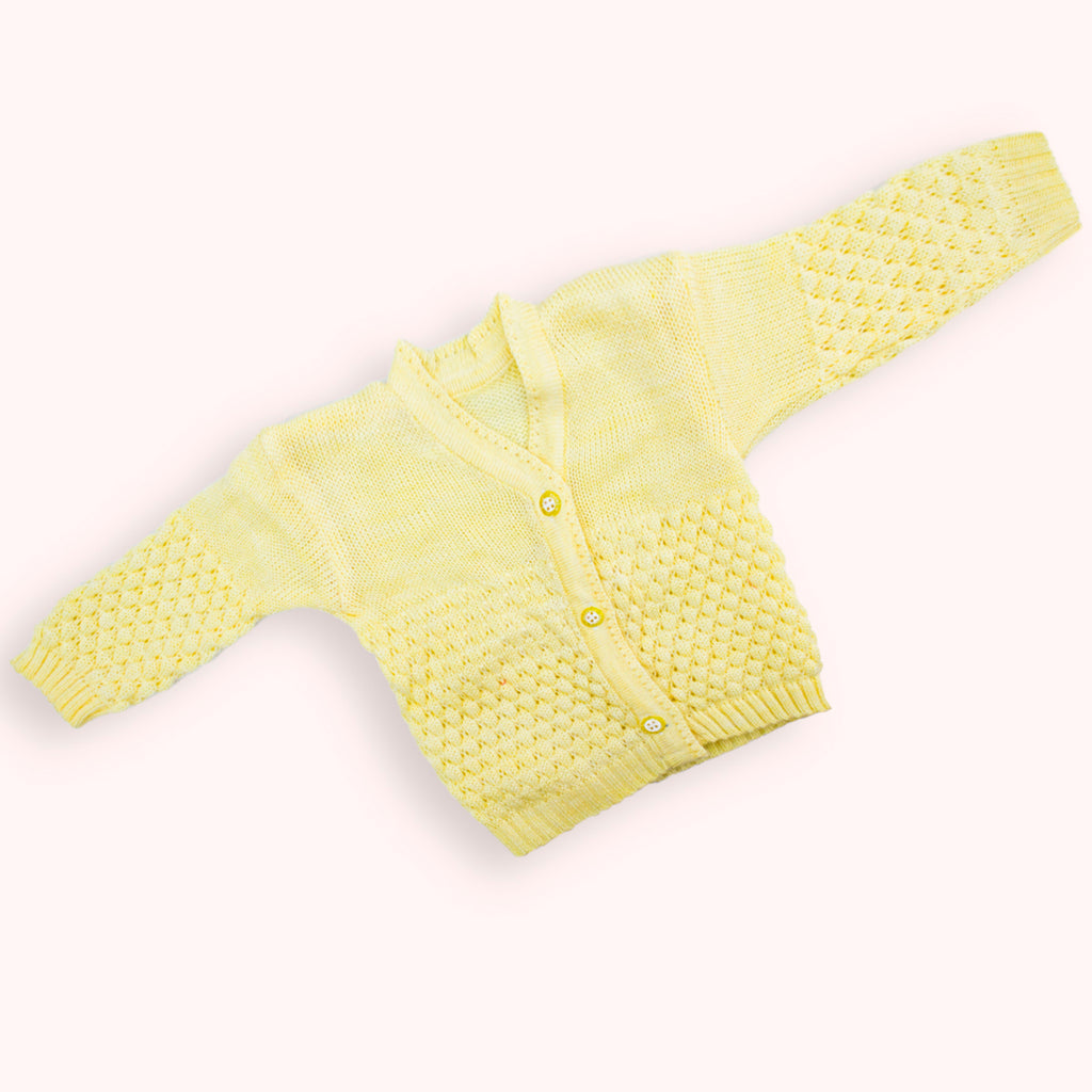 Looking for a sweater that gives your baby the warmth of a mother and serves as a style statement? Then, Born Babies' baby sweater set is the best choice. It is designed with love and care for your baby's delicate skin. This charming outfit includes a front-opening buttoned sweater, a cozy cap, and a pair of socks, all in a single package.