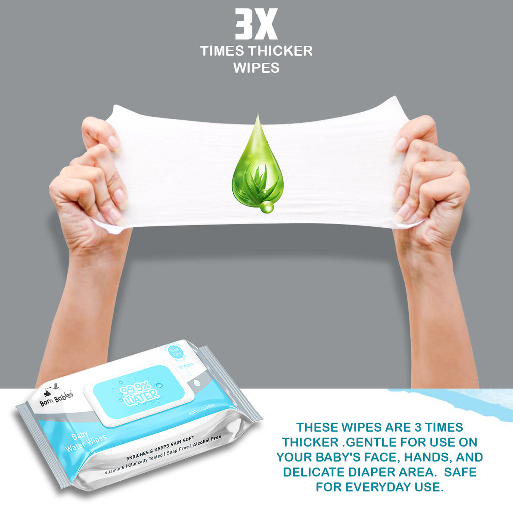 - Convenient and Hygienic: Born Babies’s baby wet wipes are a lifesaver for busy parents. They are convenient to use anytime, anywhere, making diaper changes and clean-ups quick and easy. The resealable pack keeps wipes fresh and hygienic, ensuring a gentle clean every time.