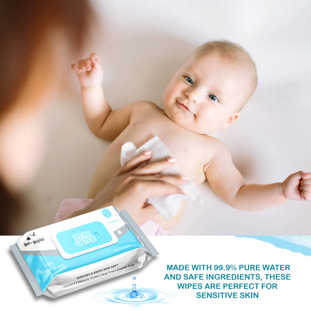 - Effective Cleansing: Born Babies wipes effortlessly tackle all sorts of little messes, from diaper changes and sticky fingers to playtime spills. They gently cleanse your baby's skin, leaving it feeling fresh and clean without the need for any harsh rubbing.