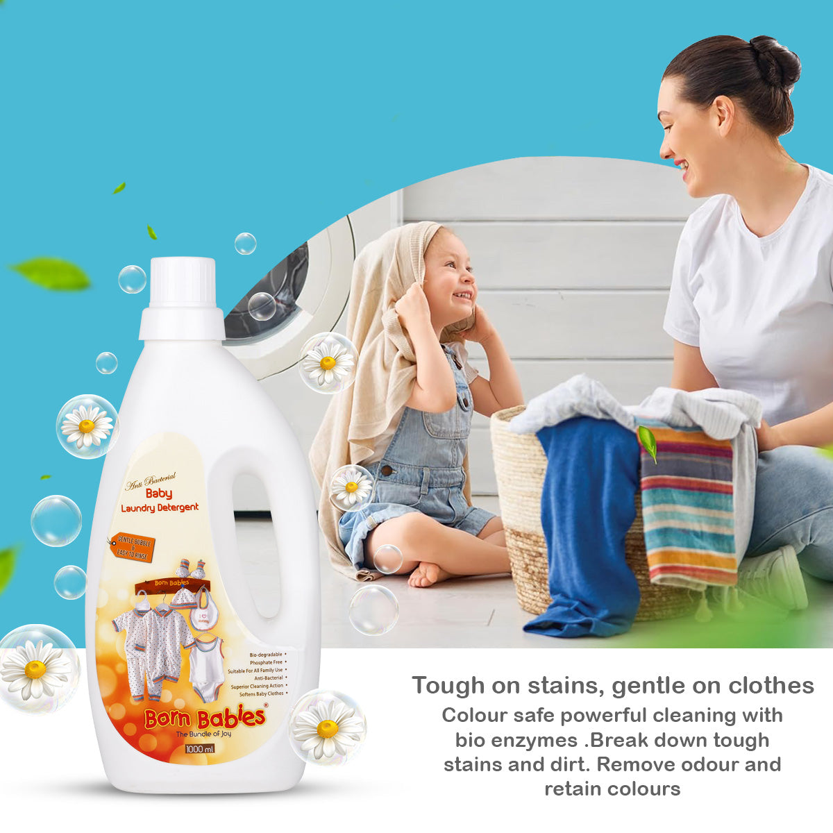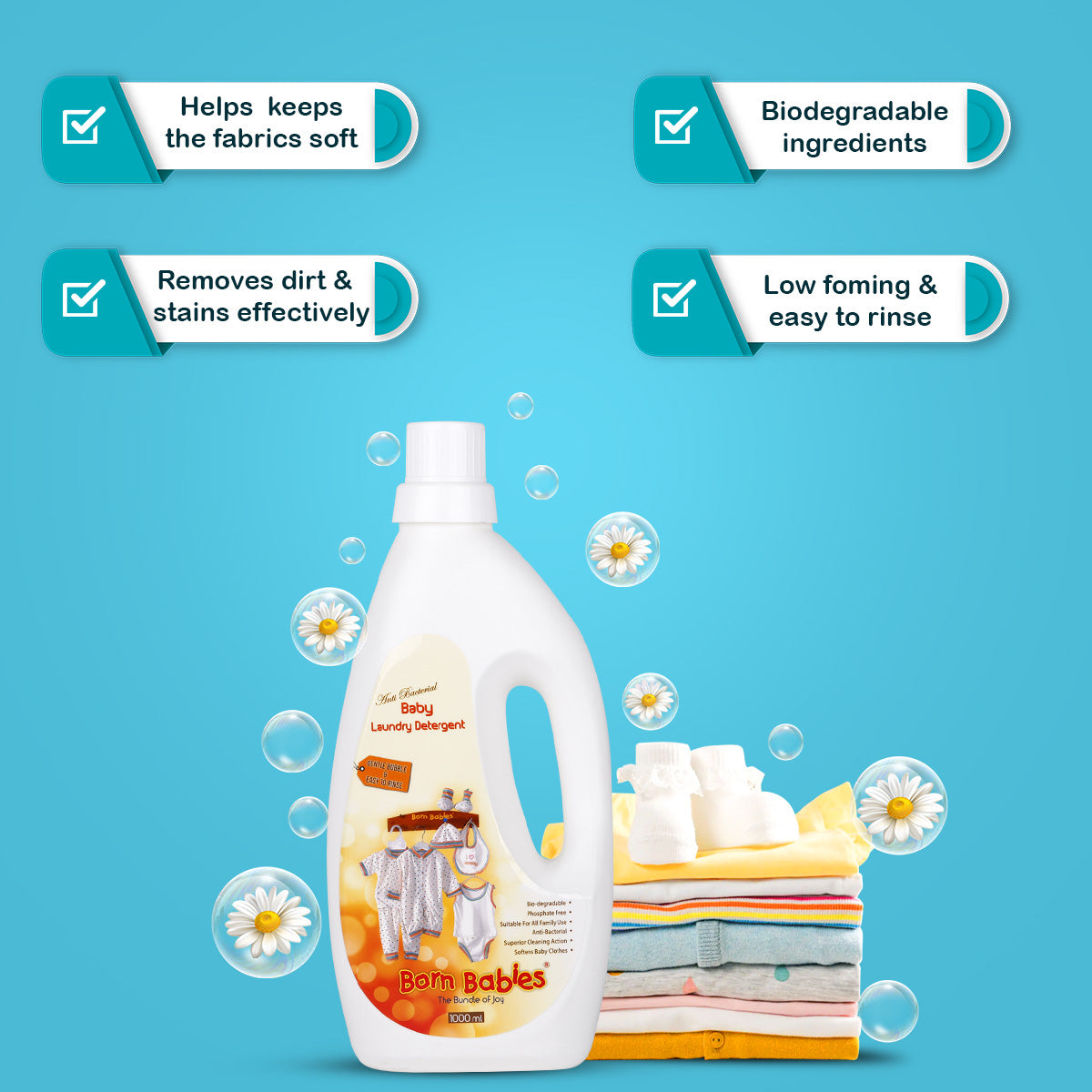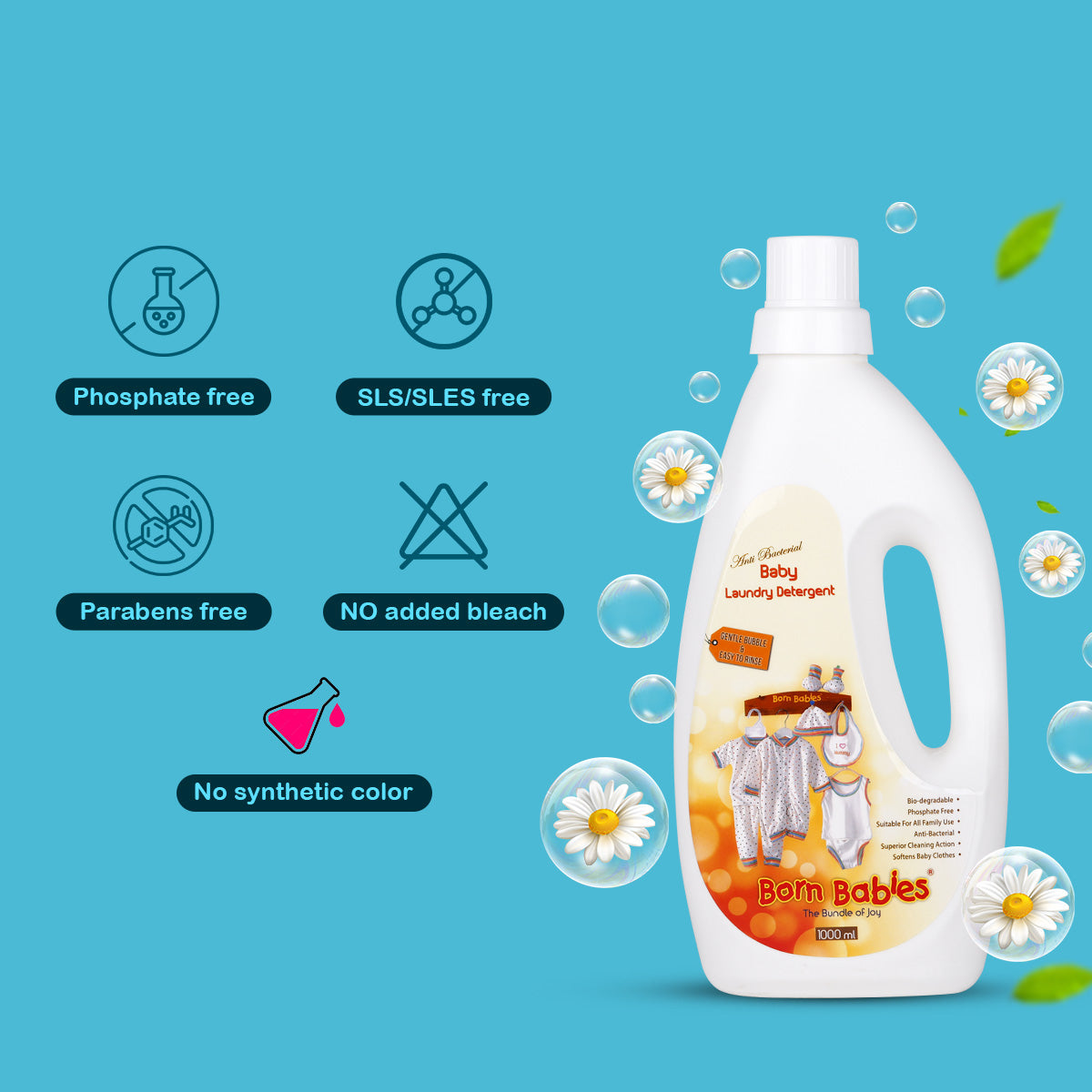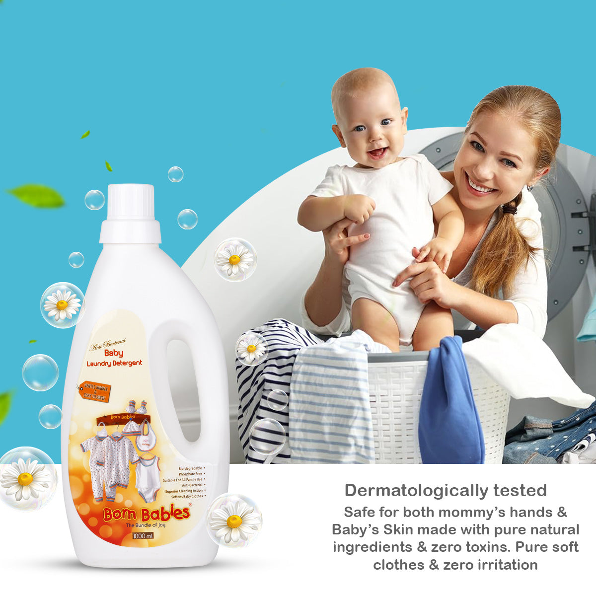 - Born Babies liquid detergent cleans most of your baby daily essentials.
