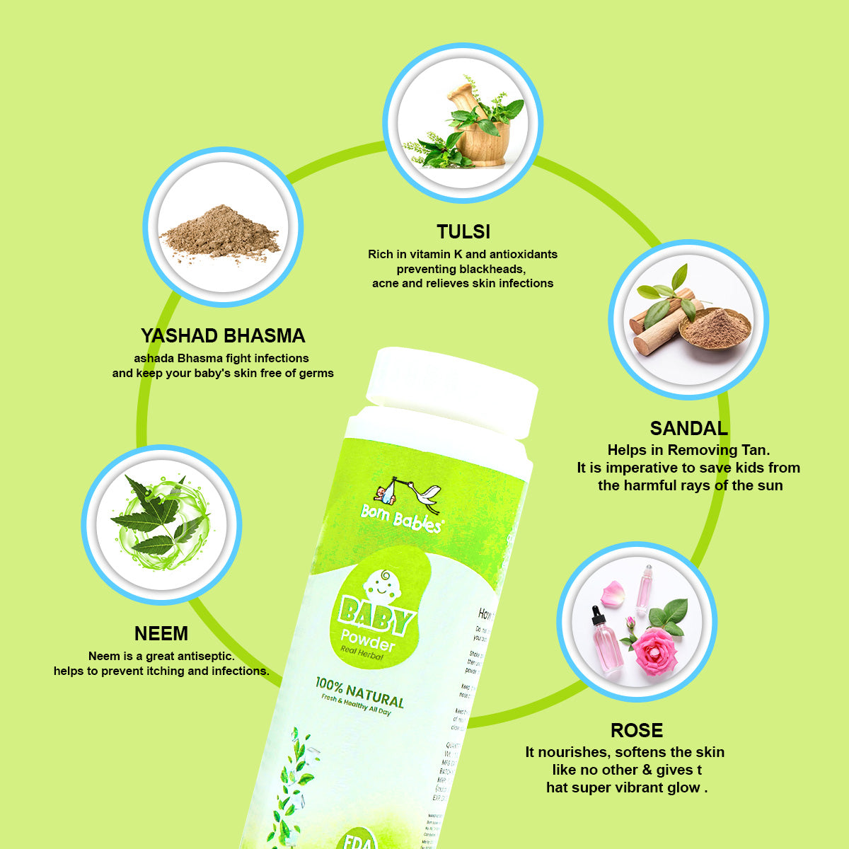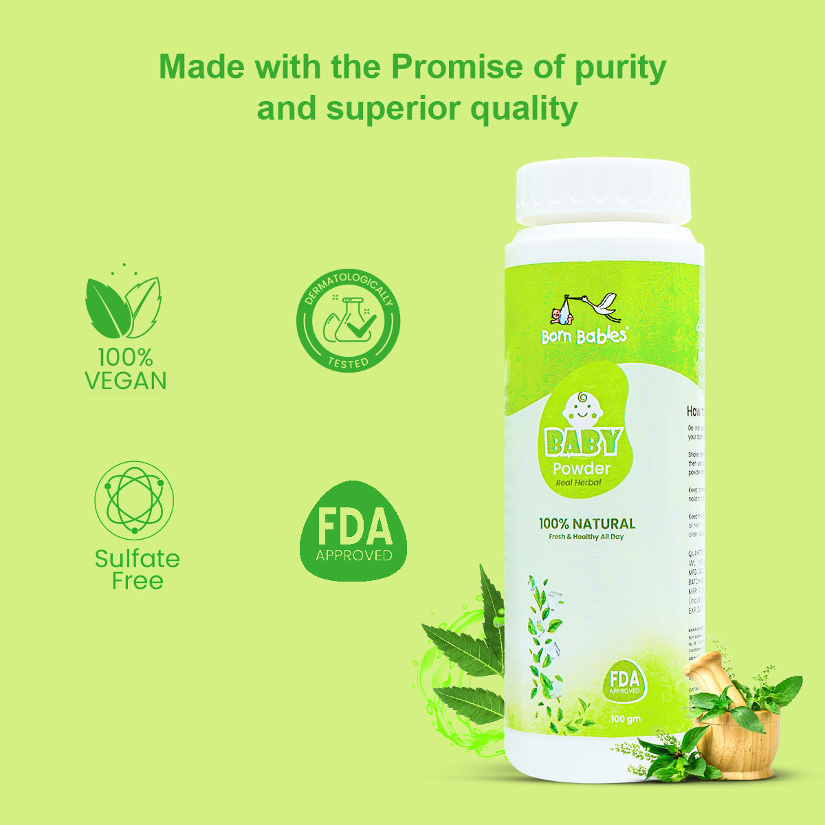Born Babies Real Herbal Baby Powder Combo (2PCS) -100GM (Buy 1 Get 1 Free)
